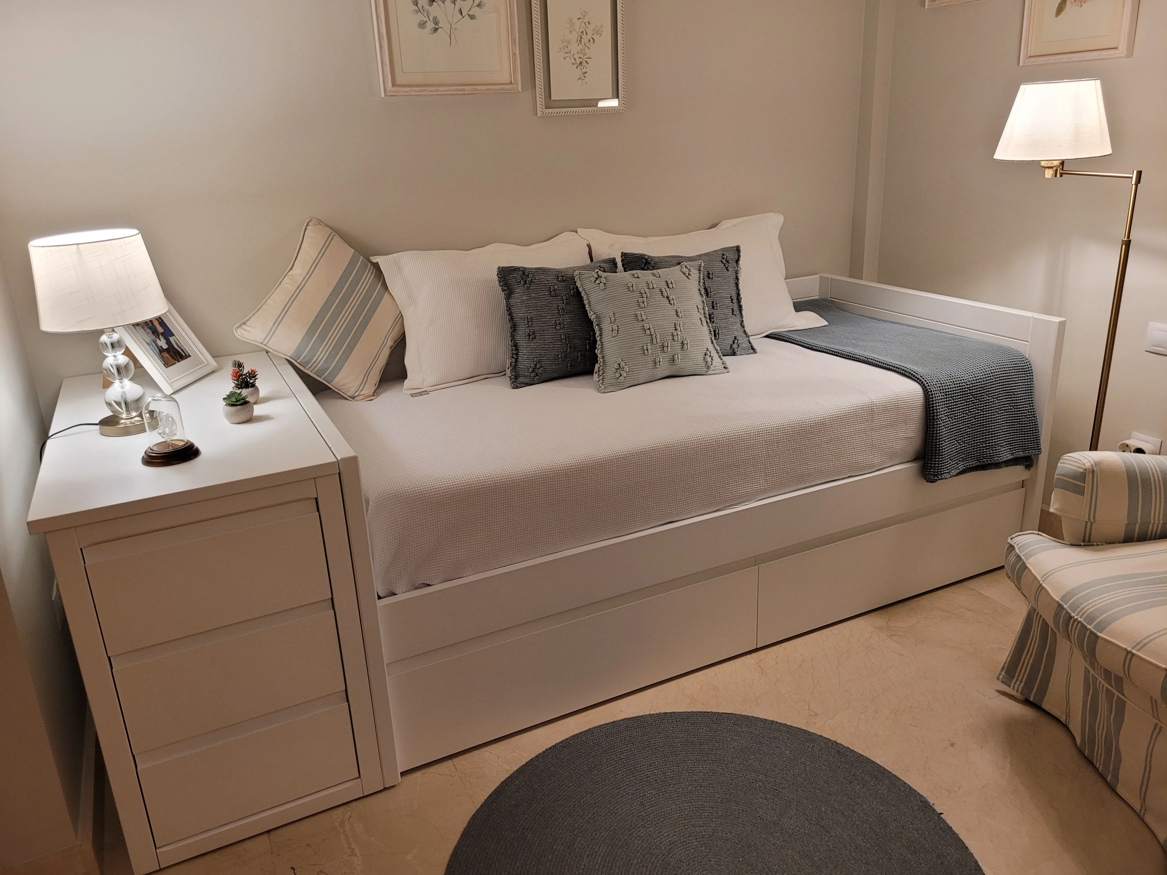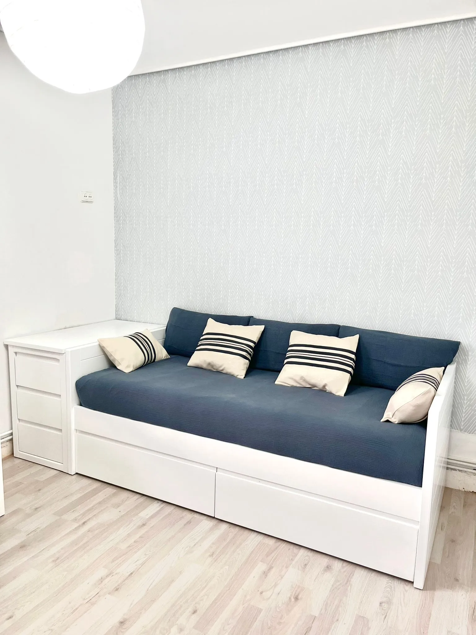 L’achat parfait. Il est beau, il est pratique et il fait la jonction parfaite entre les deux lits placés en L.