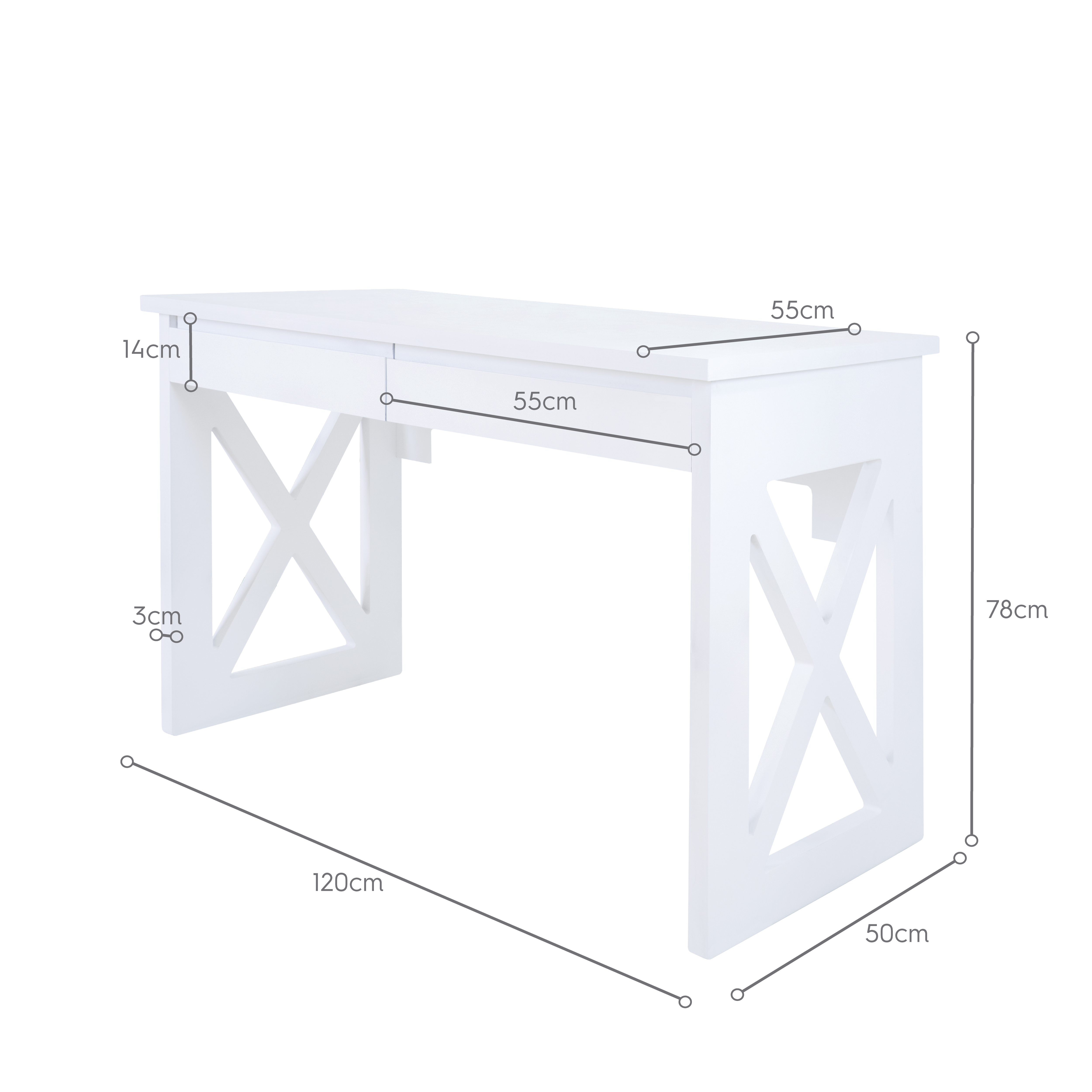 Si vous recherchez à aménager un nouvel espace où fonctionnalité et confort vont de pair, cette table est idéale. Vous pourrez créer ainsi un coin bureau pratique, amusant et élégant, s'adaptant parfaitement à l'atmosphère de la pièce et ajoutant une touche de personnalité. Le bureau propose également du rangement grâce à ses deux tiroirs centraux et discret.