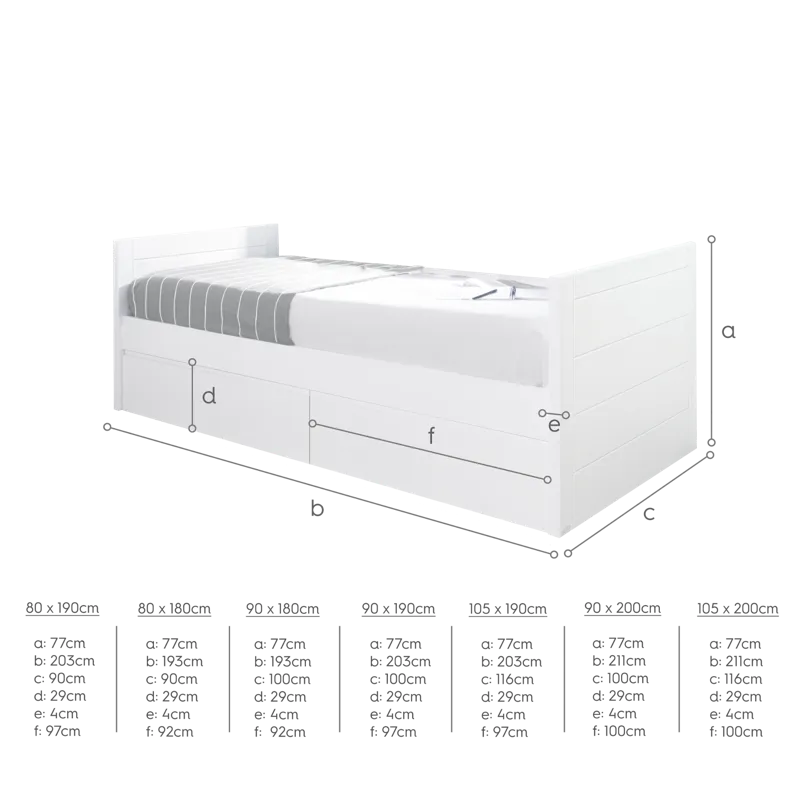 Dimensions du lit: 193 cm L x 90 cm P x 77 cm H