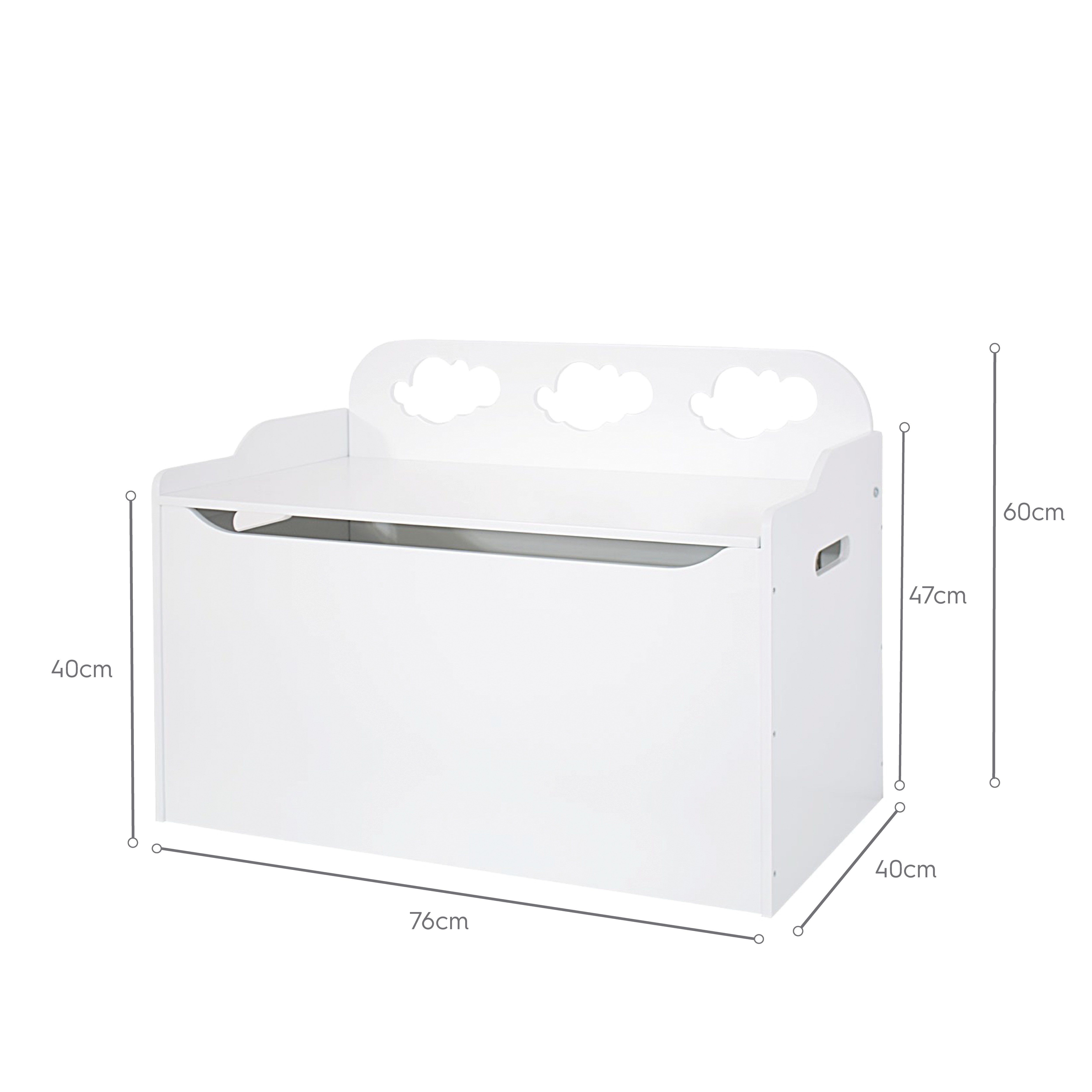 Design pour enfants : Avec son design blanc et ses petites étoiles le coffre à jouets apportera une touche de fantaisie dans le coin de jeux.