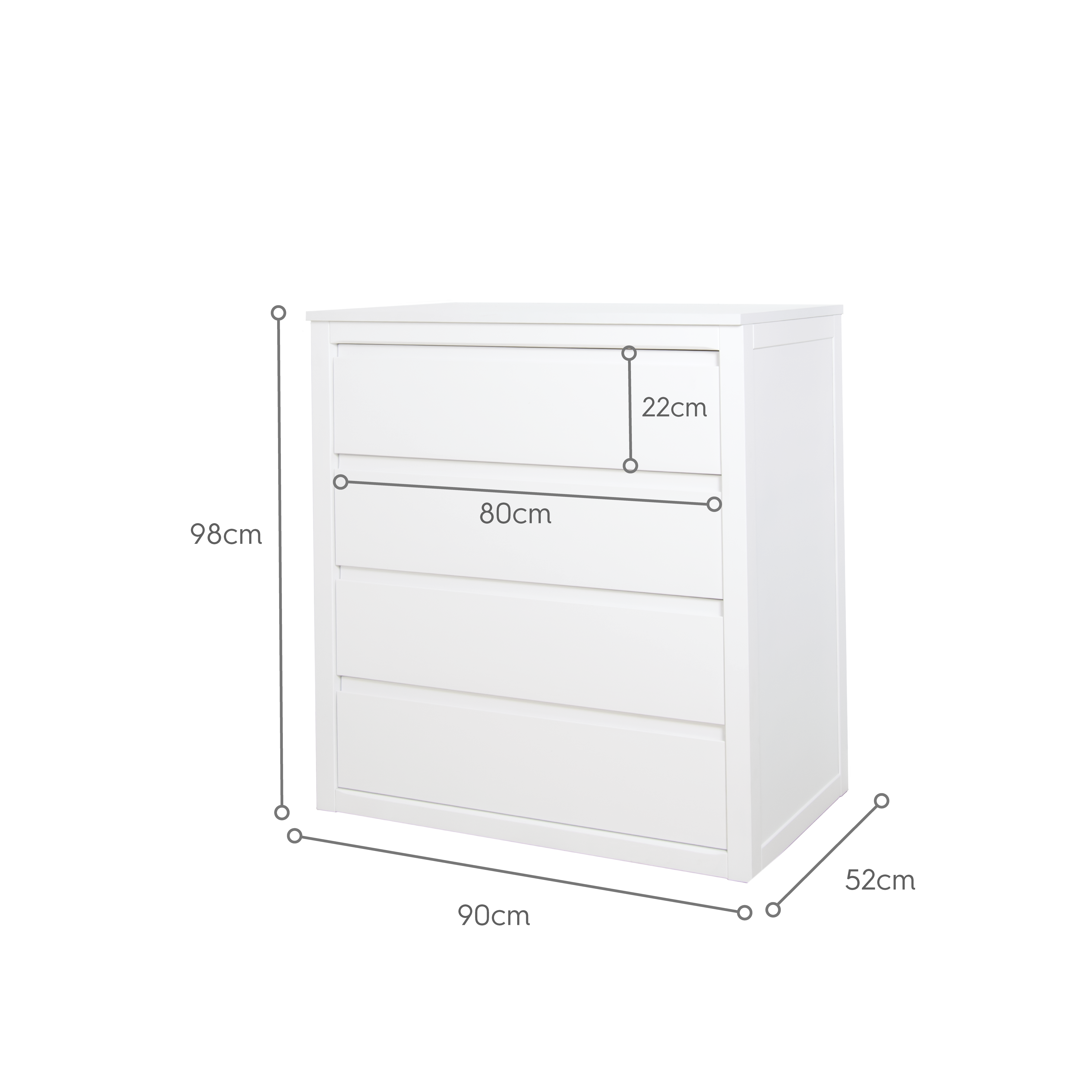 Dimensions de la commode: 90 cm largeur x 52 cm profondeur x 98 cm hauteur