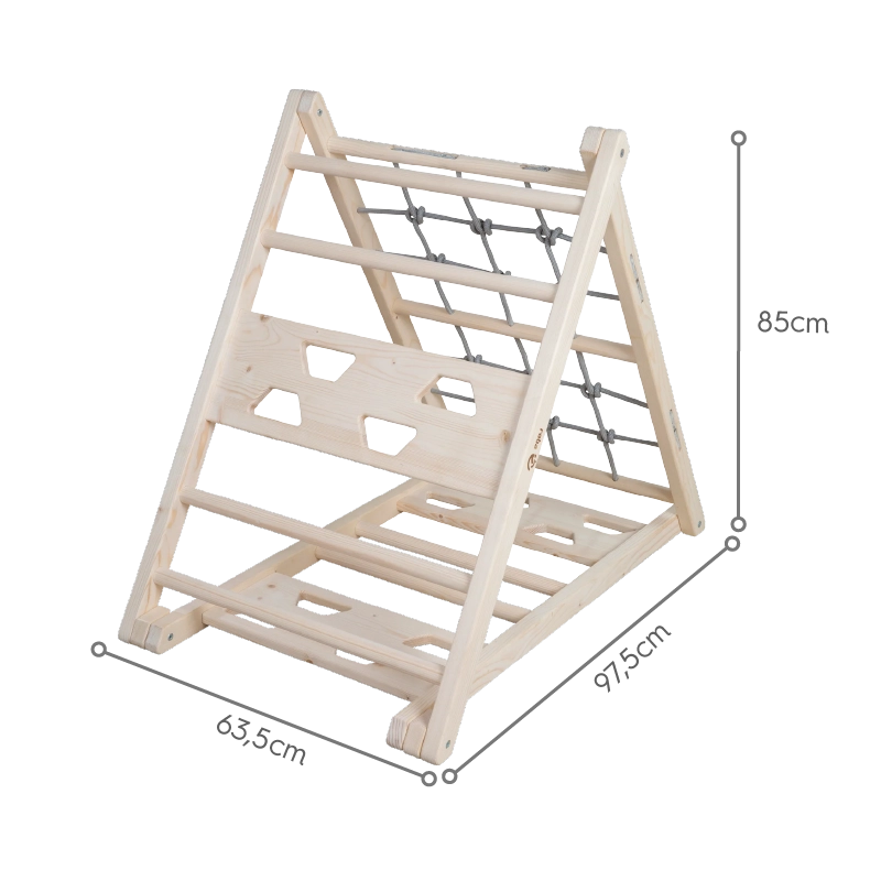 Idéal pour les enfants dès 24 mois, ce triangle favorise le développement moteur, l’équilibre, la force et la coordination dès le plus jeune âge. Fabriqué en bois massif, avec un design stable et sécurisé, sa finition naturelle et son esthétique élégante lui permettent de s’intégrer parfaitement dans toute chambre d’enfant ou espace Montessori.