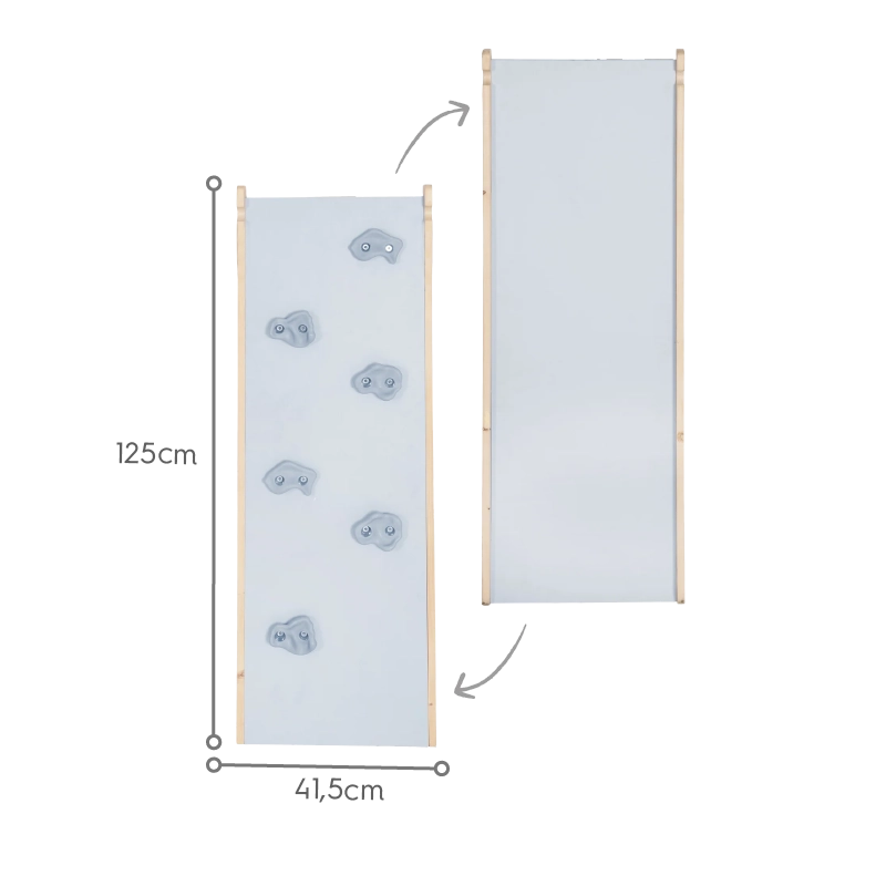 2 fonctions en 1 : Toboggan pour glisser et planche d’escalade pour stimuler le développement moteur.
