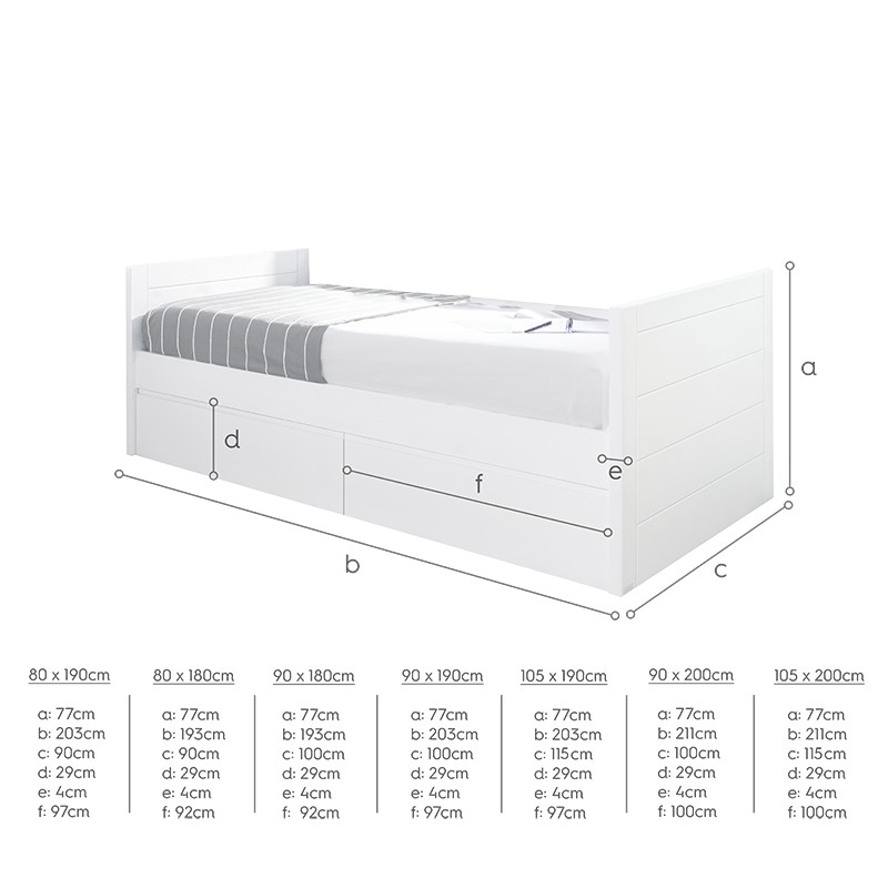 Dimensions du lit: 203 cm L x 115 cm P x 77 cm H