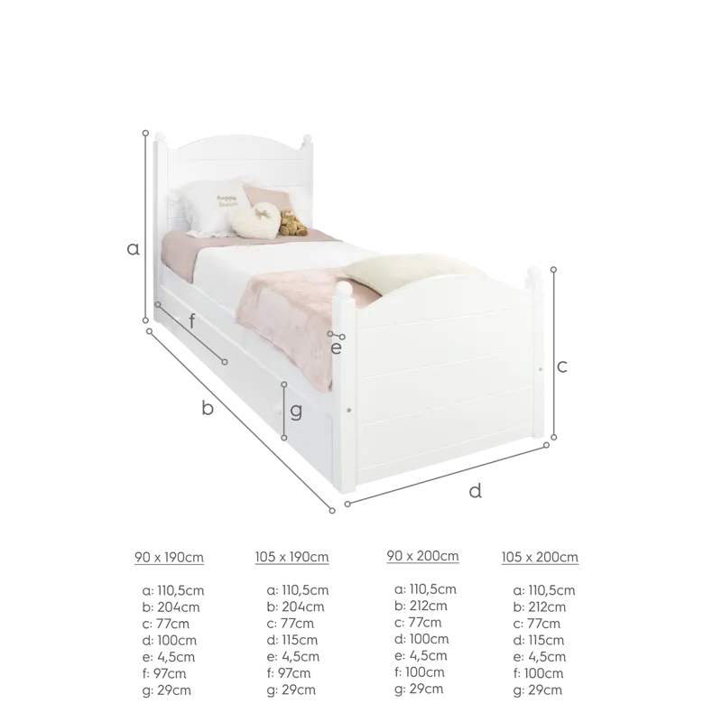 Dimensions du lit: 205 cm L x 100 cm P x 110.5 cm H