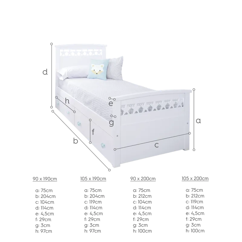Laqué blanc, le lit possède une qualité exceptionnelle. Il est idéal pour les chambres enfant comme ado. Les enfants vont aimer les petits détails en forme d'étoile.