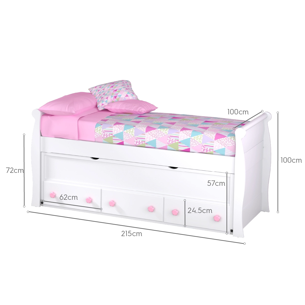 Le lit gigogne avec rangement Gondole est le lit parfait pour les petites chambres de part sa conception compacte et sa polyvalence. Laqué blanc, le lit possède une finition de qualité exceptionnelle. Fabriqué avec soin, cel lit au design doux et romantique est idéal pour une pièce enfant-ado.