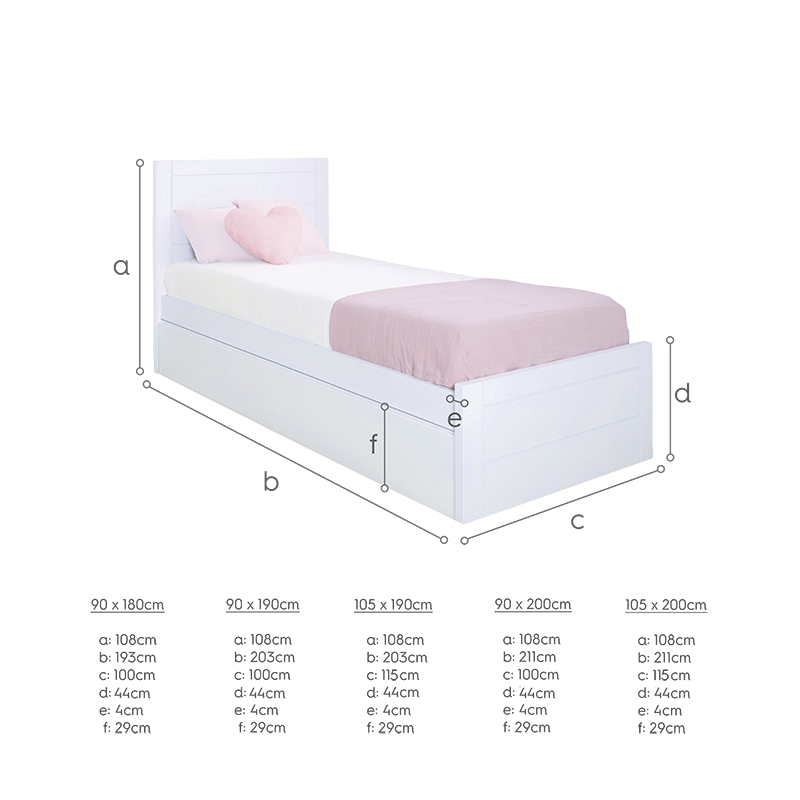 Avec une finition laquée en blanc qui vous permet de le combiner facilement avec tous les espaces et styles décoratifs. En plus d'être un lit durable, il se distingue par un design aux lignes très élégantes.