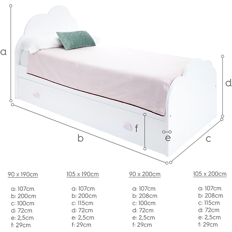Ce lit en forme de Nuage créera une ambiance enfant amusante et atypique. Grâce à sa structure légère et robuste vos enfants pourront l'utiliser parfaitement au fil des années, dès 3 ans jusqu`à l´adolescence.