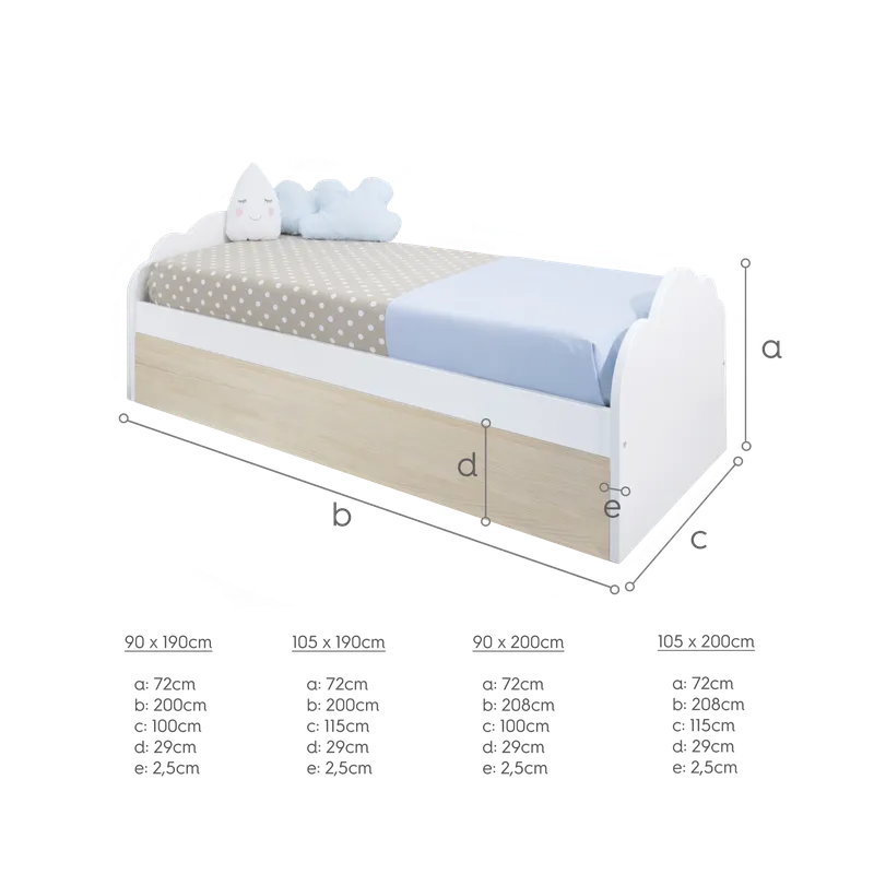 - Lit gigogne blanc et bois Nuage