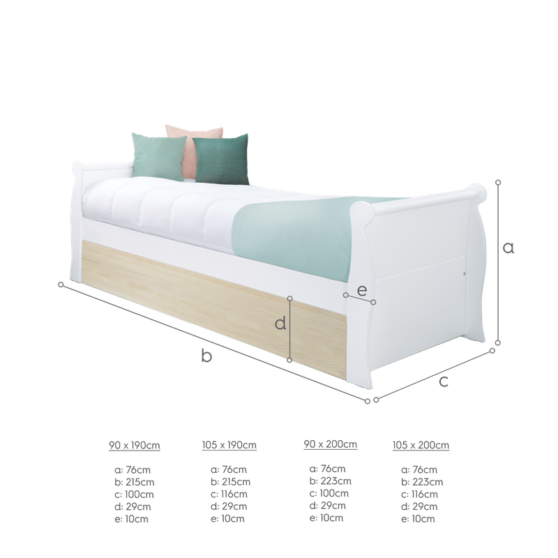 • Dimensions du lit: 223 cm L x 116 cm P x 76 cm H