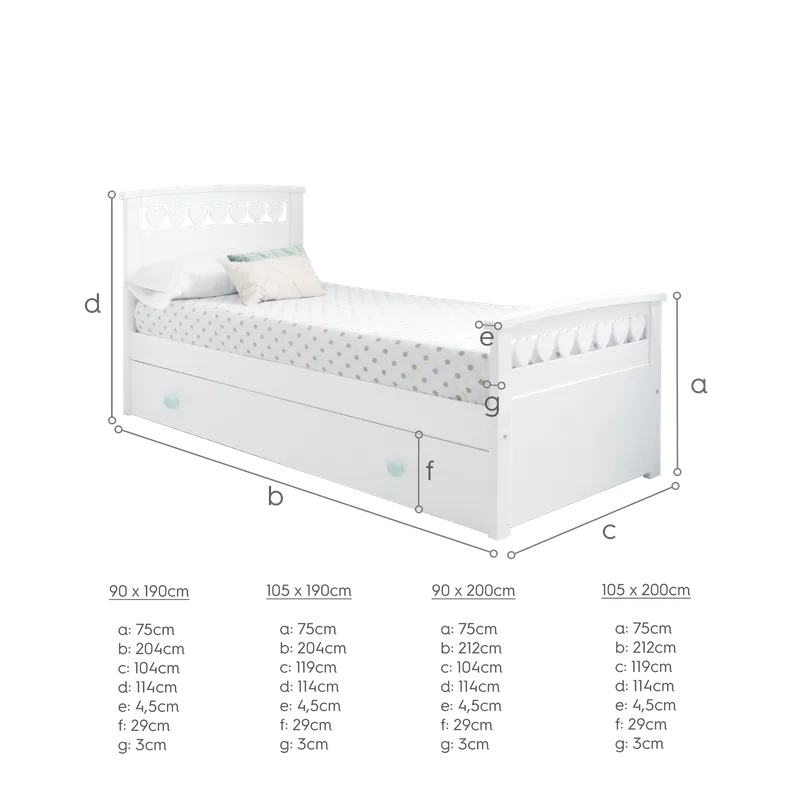 • Dimensions du lit: 202 cm L x 104 cm P x 115 cm H