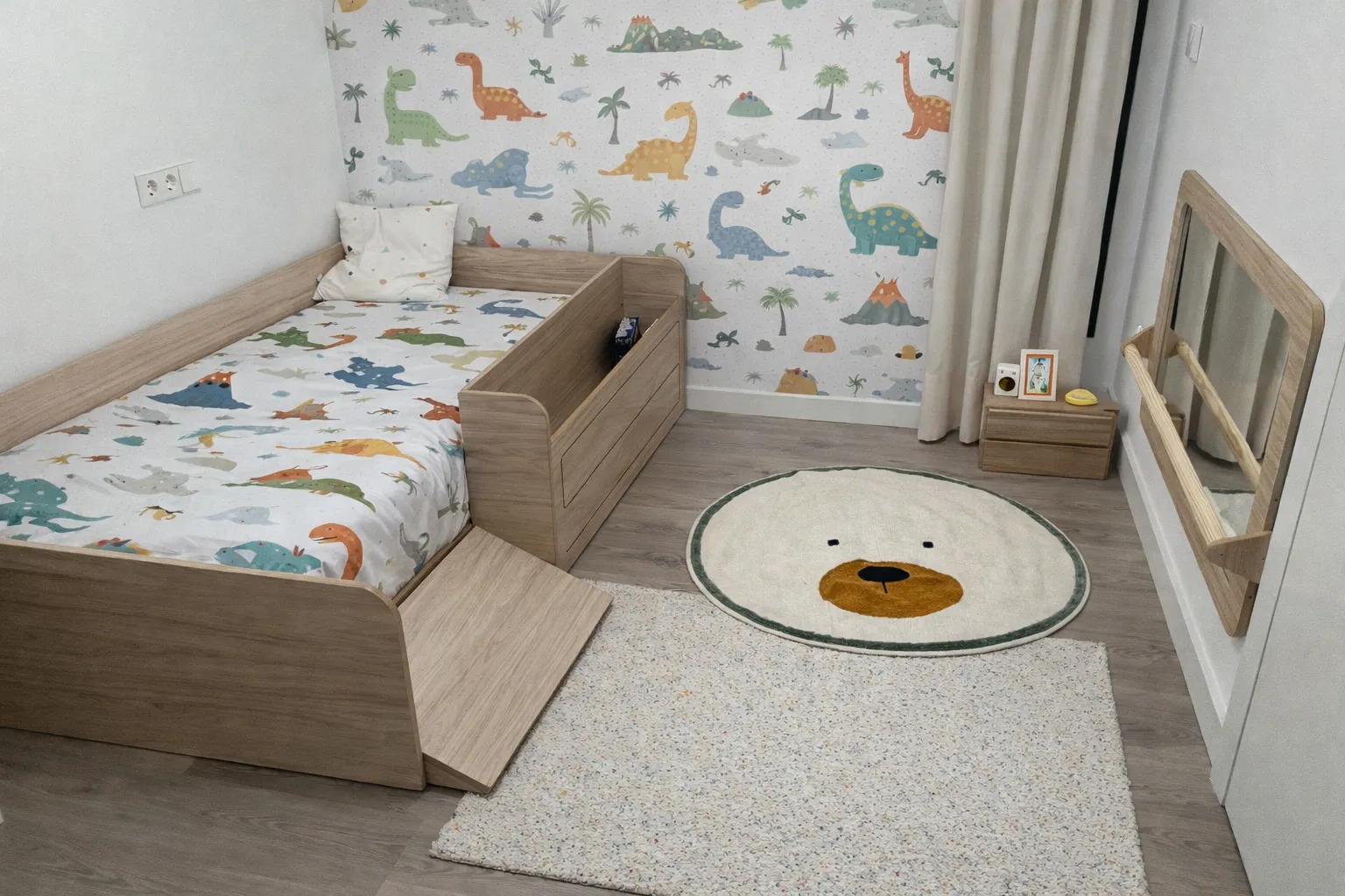 Notre lit Montessori avec rampe et coffre à jouets est bien plus qu’un simple couchage : c’est un espace de jeu, de repos et d’apprentissage. Conçu pour faciliter la transition du berceau au lit en toute sécurité, il comprend une rampe douce pour monter et descendre en toute autonomie, et un coffre de rangement intégré pour favoriser l’ordre et l’exploration.