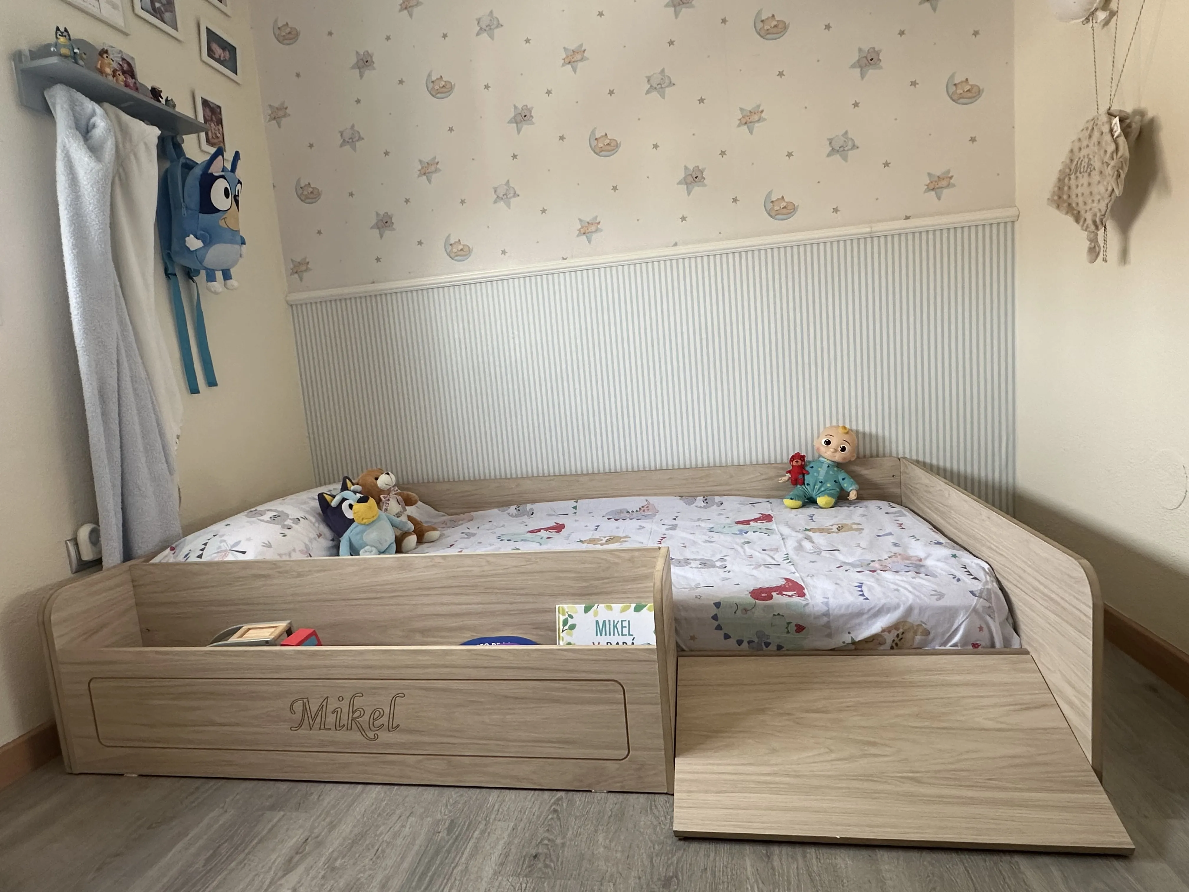 Ce lit Montessori est conçu pour offrir à l’enfant un espace sûr, accessible et stimulant. Grâce à sa rampe latérale, votre enfant peut monter et descendre seul dès le plus jeune âge, développer sa motricité et renforcer sa confiance.