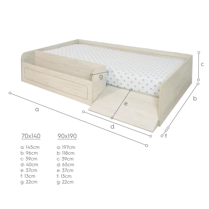 Dimensions du lit : 145 cm (L) x 96 cm (P) x 39 cm (H)