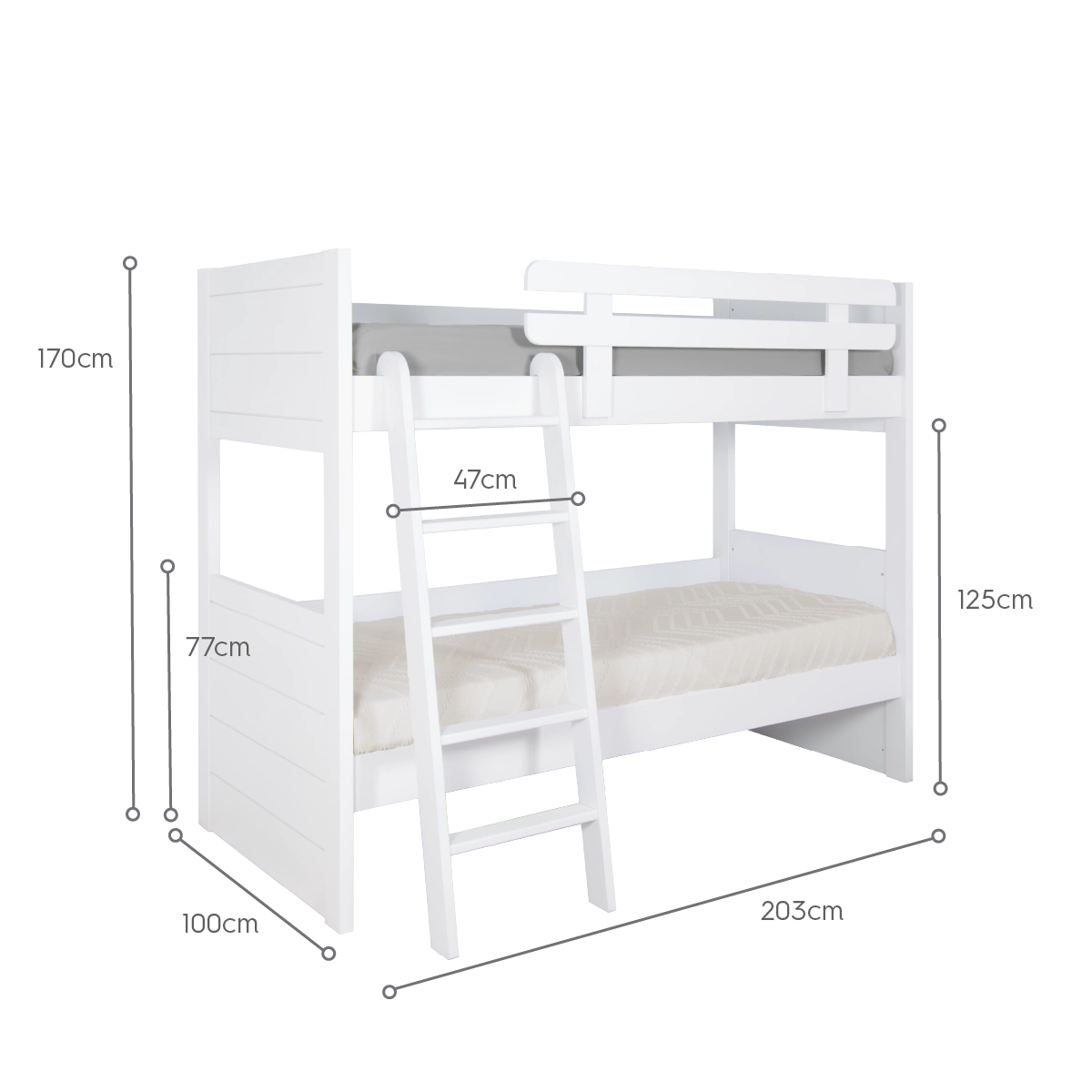 *Notre recommandation est un matelas de 20 cm pour le lit supérieur et pour le lit inférieur*