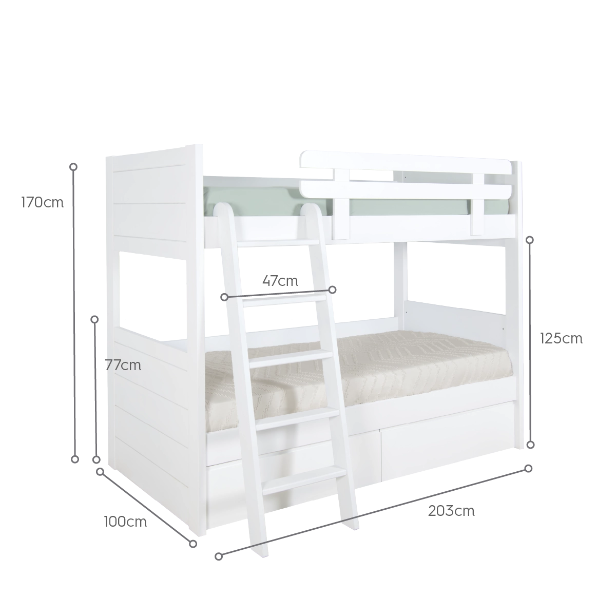 *Épaisseur recommandé du matelas pour le couchage du haut : 15 cm