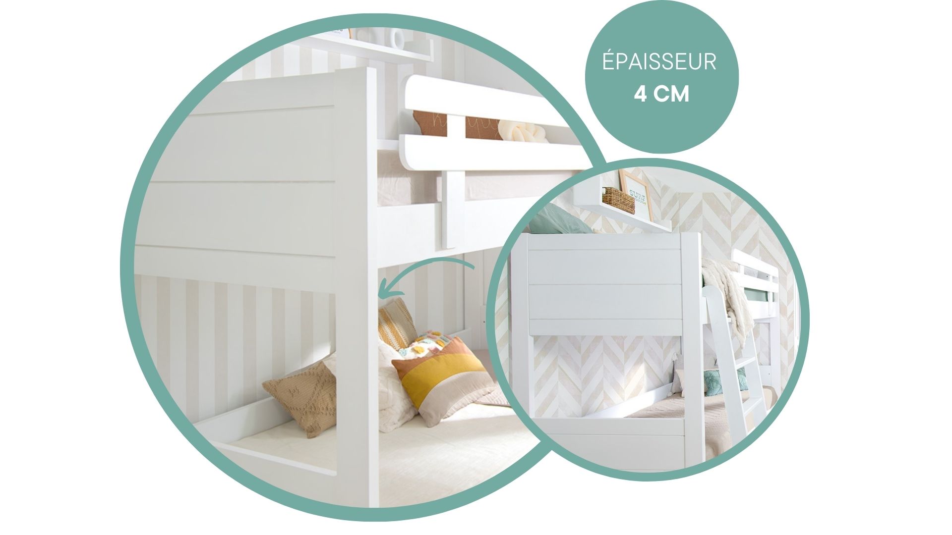 *Épaisseur recommandé du matelas pour le couchage du haut : 15 cm