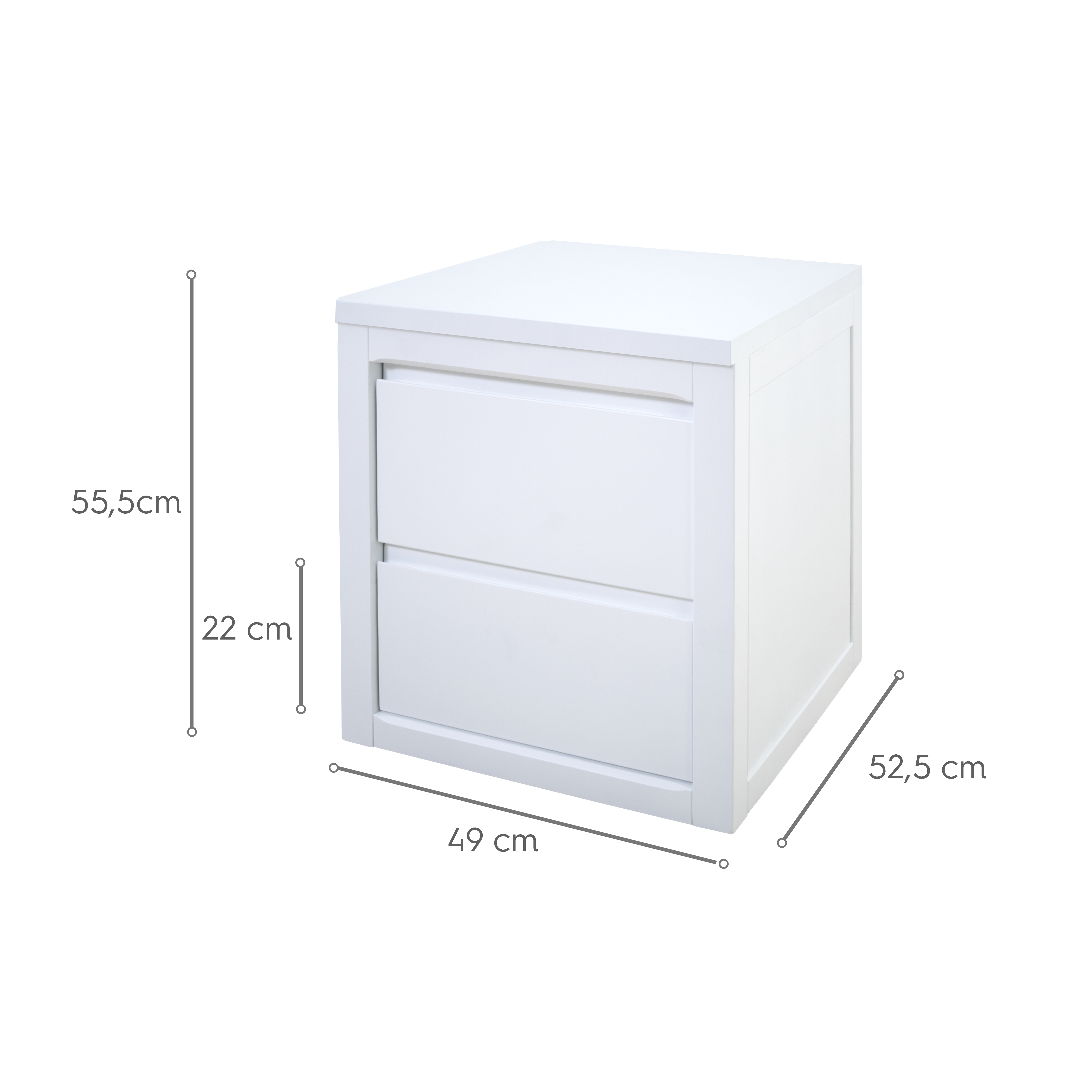 Dimensions du chevet: 49 cm largeur x 52.5 cm profondeur x 55.5 cm hauteur