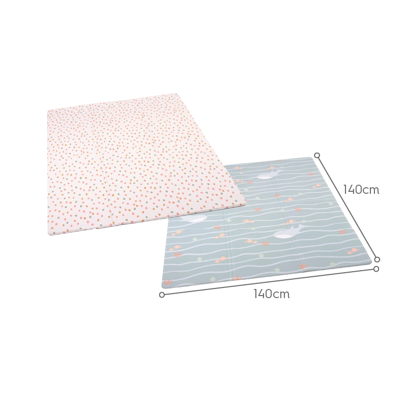 Tapis de sol pour enfant et bébé en vinyle, facilement lavable. Idéal pour jouer et faire des galipettes. Modèle rectangulaire avec deux thèmes : un côté monde sous-marin et un côté petits points. Utilisable en intérieur dans la chambre, le salon ou un coin de jeu, comme en extérieur. Le tapis de jeu parfait pour s’amuser avec ses jouets en bois.. Compatible avec le chauffage au sol.